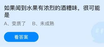 在玩这个关于水果气味判断的游戏时,如果闻到水果有浓烈的酒糟味,那很可能是水果已经开始发酵变质啦。