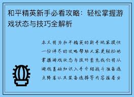 和平精英攻略有哪些
