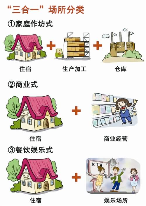 用于家庭作坊和经营活动的“三合一”场所按照分类标准的不同有多种类型。