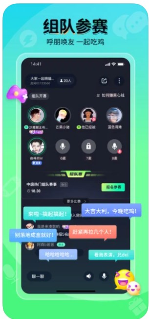 1、【组队同玩】这款软件是专门为广大的电竞爱好们而打造的,大家可以随时在线进行组队约玩。