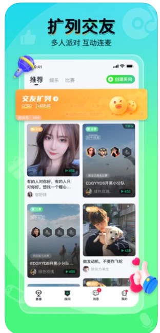 1、提提电竞苹果版app里面还为大家提供了一个超级有趣的在线社交互动平台,拥有多个派对方式让大家可以实时在线连麦互动。