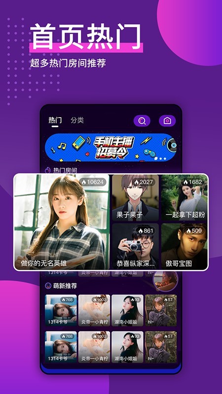 一键开播,自己可以进行开通直播,快速成长为高水品主播;