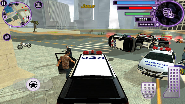 迈阿密:自由之城2是一款充满刺激与冒险的模拟类安卓游戏。玩家将扮演一名黑帮老大,在迈阿密这座自由之城中随心所欲地进行各种活动。游戏采用了3d仿真建模和真实的物理引擎,为玩家带来了逼真的视觉效果和流畅的操作体验。在这里,你可以驾驶各种交通工具在城市中自由穿行,完成各种任务,同时也要时刻小心来自警察的追捕。