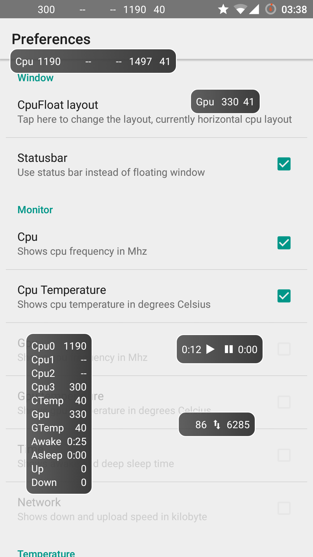 浮动 CPU 状态手机版是一款功能强大的安卓软件,它能实时显示手机 CPU 的各种状态信息。通过简洁直观的界面,用户可轻松了解 CPU 的使用率、频率等关键数据,就像为手机 CPU 安装了一个随时可见的“监视器”,帮助用户更好地掌握手机性能动态,对手机运行状况了如指掌。